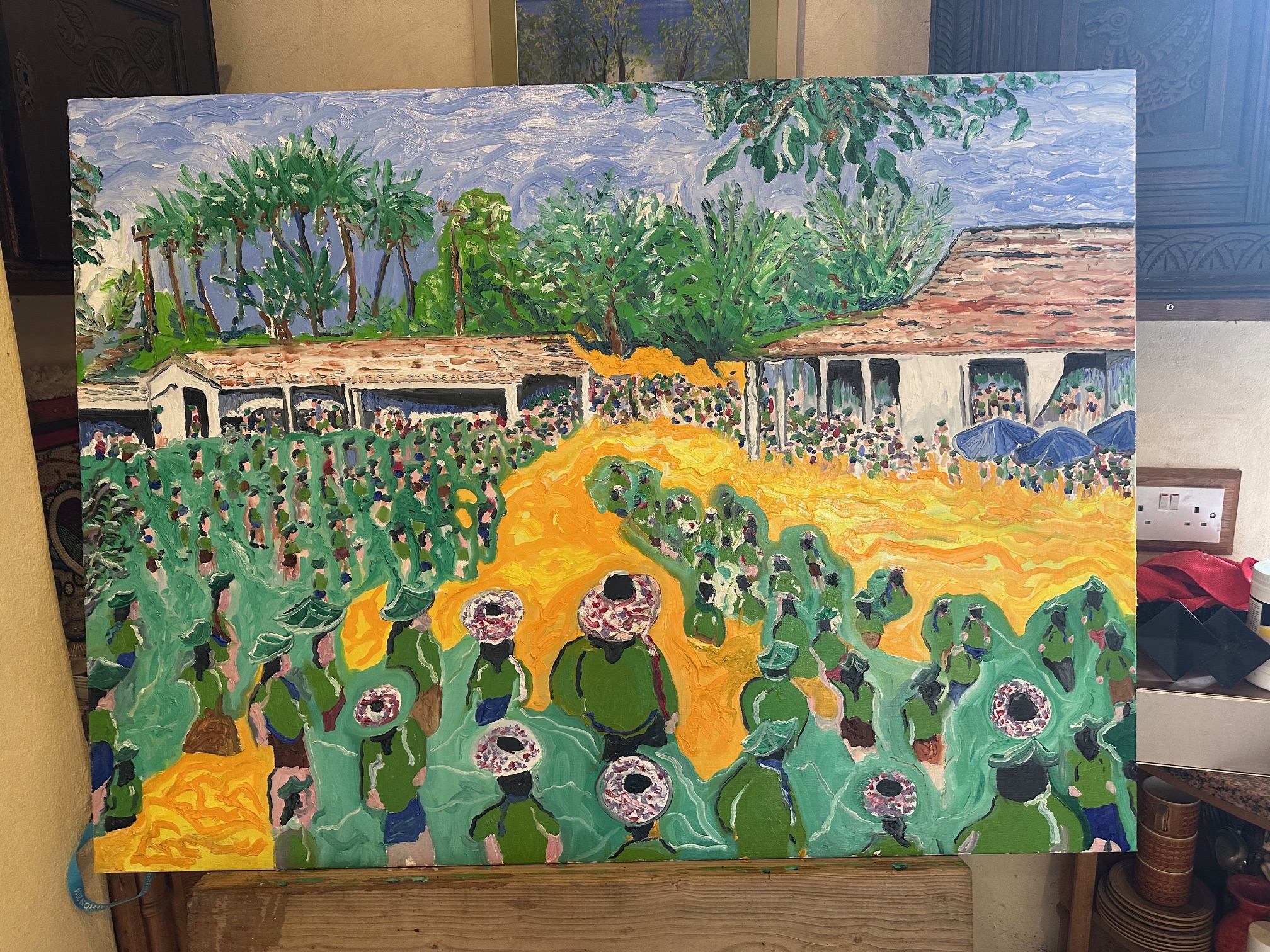 Oil inspired by Aututaki, Cook Islands. Years back pre covid I took a sketch book to the South Pacific. The book itself I will digress a bit on because it was sourced in Italy and was extremely well appointed. It was